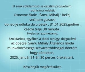 Саопштење ОШ „Шаму Михаљ“ школе