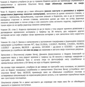 Odgovor Načelnice opštinske uprave